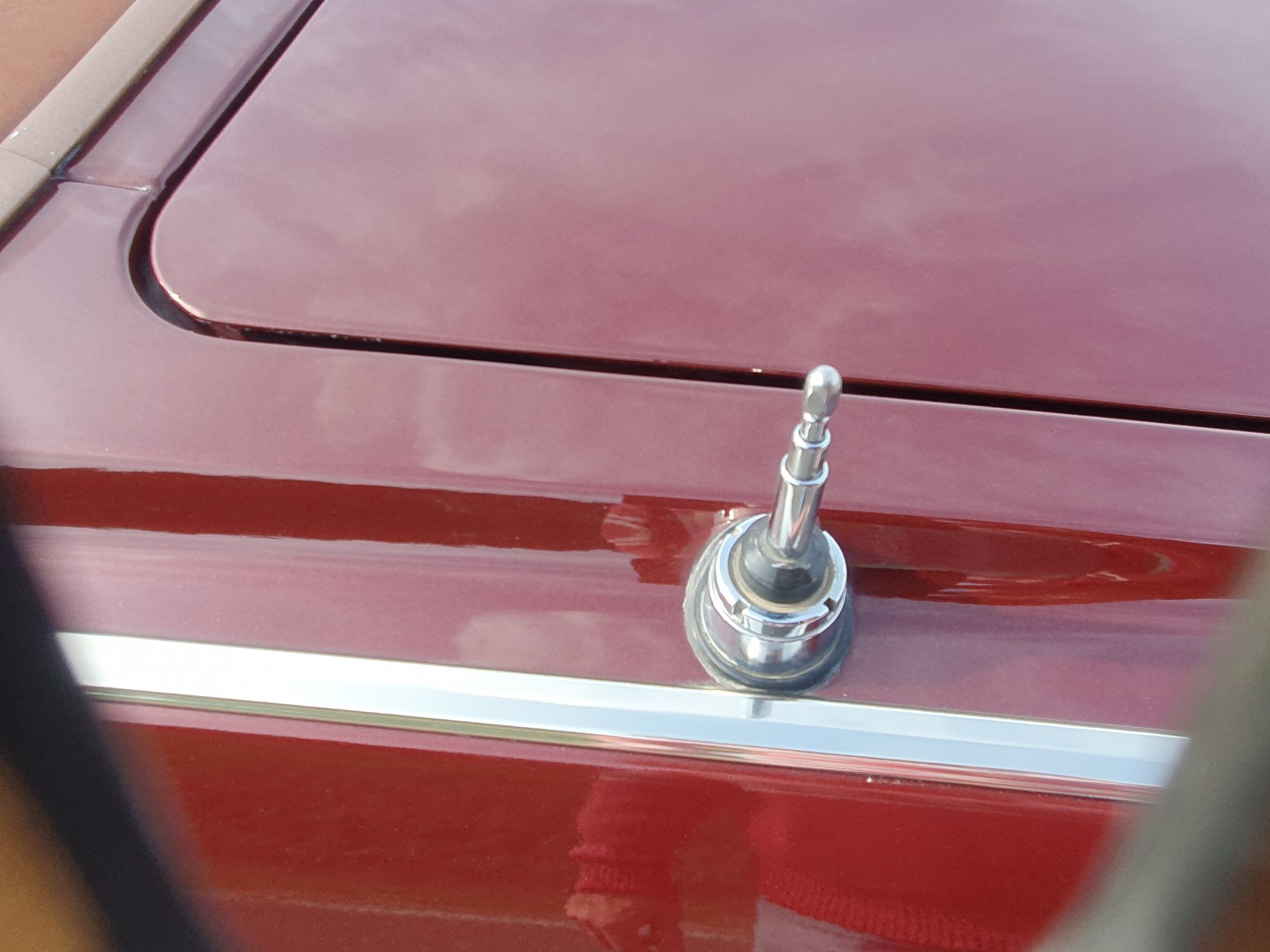 Eine tolle Farbkombination dark red mit Cardovan velour in beige geben dem Wagen eine elegante Erscheinung.