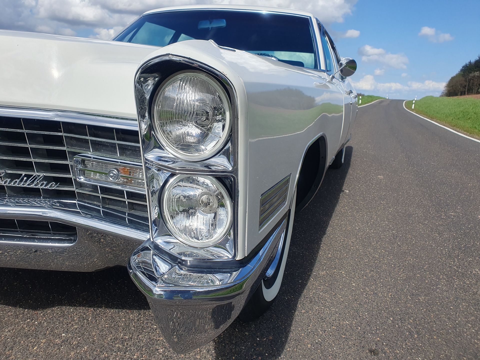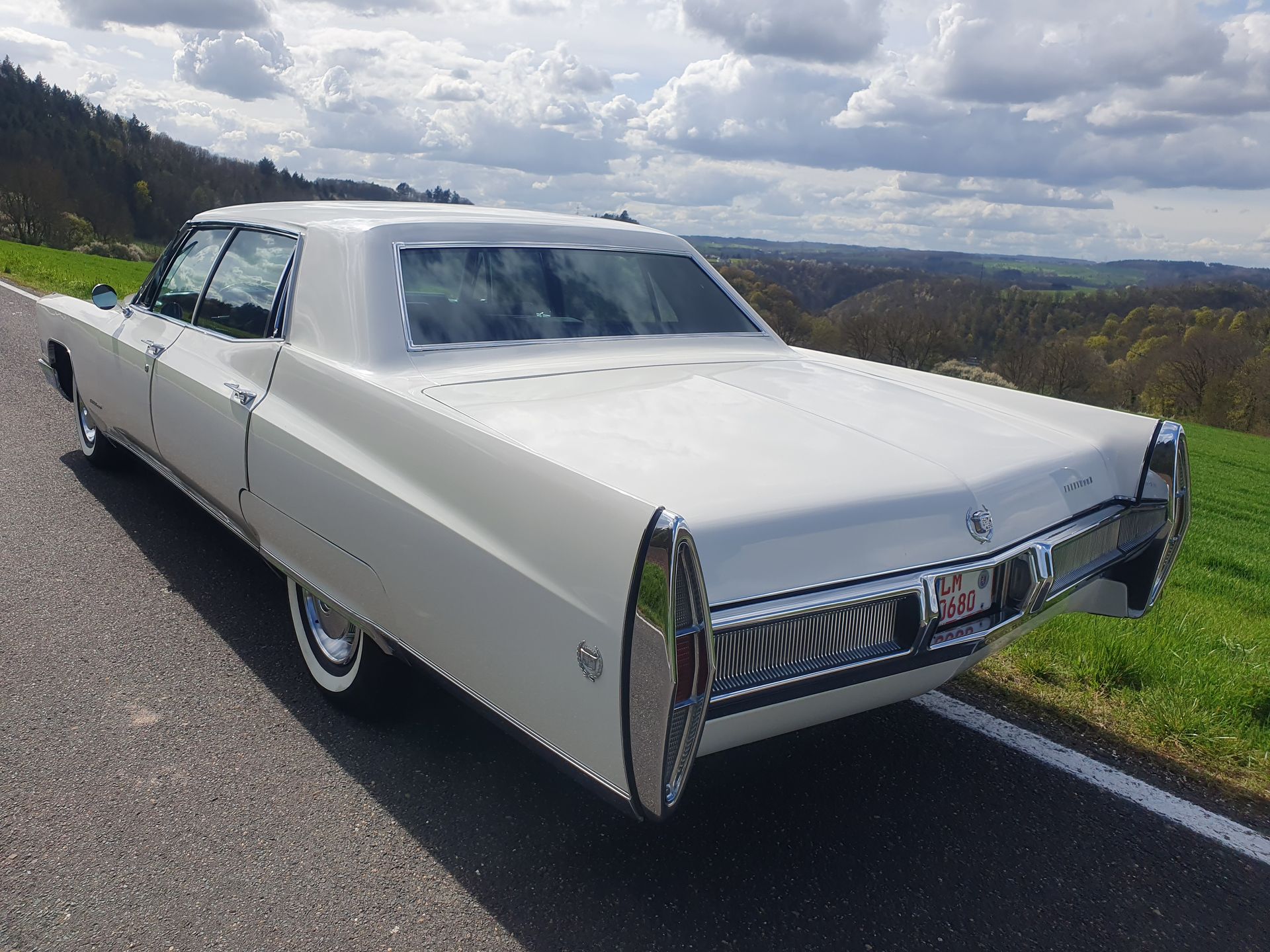 A Fleetwood is a rare find. It is an L version with a wheelbase that is around 10 cm longer, which benefits the rear passengers. An opulent affair. Particularly with the rare fabric seats in a great design and pleasant fabric quality. Very luxurious! The car comes from California and is in very good condition. The mileage is only 42,000 miles! It is suitable for long distances and everything works as it should. Well maintained, with German registration and H-certificate. No Cadillac of this era is fully equipped from the factory and this one has some rare and high-quality extras: - Automatic air conditioning - Central locking - Cruise control - Automatic lights - Automatic dimming - AM radio with electric antenna - 2-stage rear window blower - Electric trunk opener - 4-piece premium floor mats The 429 V8 engine is very smooth and powerful. The 3-speed automatic transmission shifts smoothly. The suspension comfort is particularly good: thanks to the slightly longer wheelbase and the original springs and dampers, traveling with this Fleetwood is a joy!