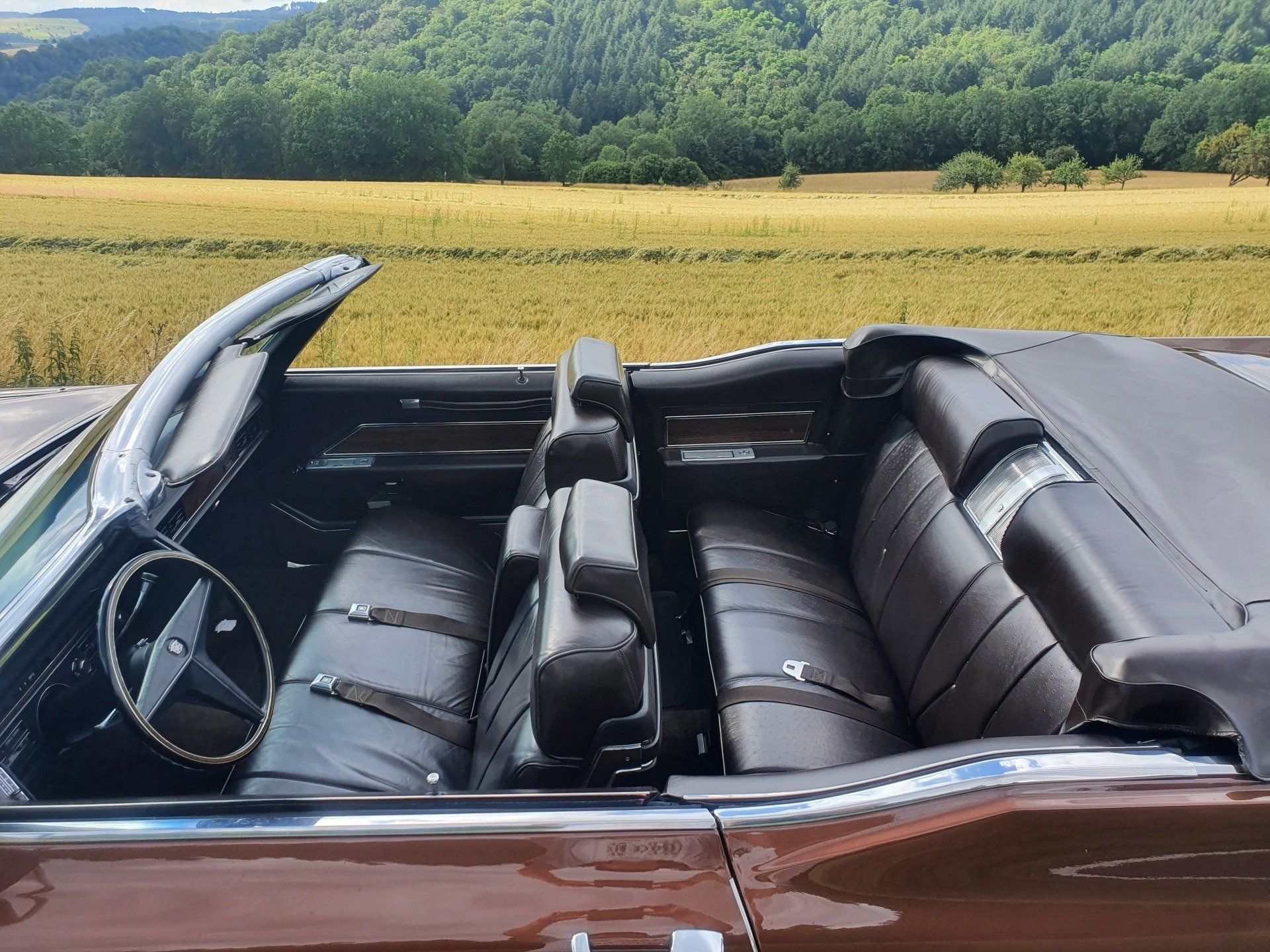 This Cadillac convertible has a very nice history. The first owner was a university professor from New Jersey. In the first summer he only used the car when the weather was nice to drive to university. The parking sticker is still stuck to the windshield. During the autumn holidays he put the car in the garage of his holiday home. There the Caddy was only used sparingly during the holidays. Many years later the family exhibited the car in a small museum. When this museum closed, my Scout bought the car. It still had the original tires and only 14,000 miles on the clock. That was 20 years ago. The car was in the good hands of a Cadillac collector until now. Now the car is back on offer. It now has 26,000 miles on the clock and has been regularly driven and serviced. It drives like a demonstration car and looks like one too. An excellent, unrestored original condition! The '69 model with the still unlimited 7.7 liter V8 engine is one of the most powerful models. Front disc brakes were standard from this year onwards. The tone-on-tone color scheme is rare for the late '60s. The grained leather, which was only available in 1969, and the steering wheel with the horn control in the steering wheel rim are special. A '60s convertible in this condition is now very rare to find. You can sit in it and enjoy the beautiful summer straight away. The car already has German papers and H-registration with a fresh TÜV.